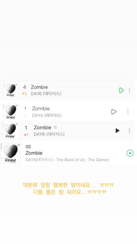 진짜 오늘 너무 눈물 나 사실 소클데 할 때도 눈물 고였는데 6시 노래 나온 이후로 순위 쭉쭉 올라가서 1위까지.. 진짜 울컥하더라 너무 자랑스럽고 수고했고 고맙다고 말해주고 싶다 우리에게 많은 힘을 주는 만큼 멤버들도 되돌려 받았으면 좋겠어 너무 소중한 사람들..ㅠㅠ 마음껏 기뻐하고 행복했으면 좋겠다 충분히 그럴 자격 있는 사람들이니까 마이데이도 오늘 수고 많았어 데이식스 마이데이 진득해 ❤️