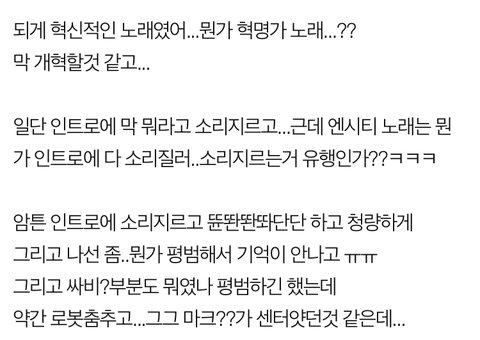 내가 듣고 잠시 충격에 몸을 떨었던 그 노래