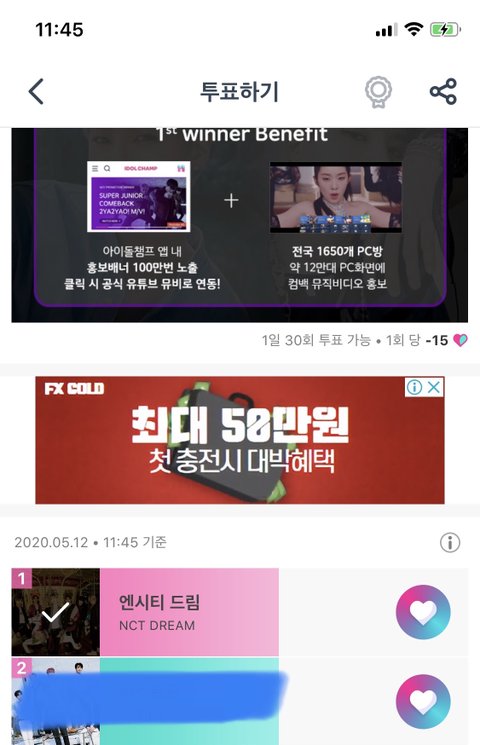 현질 안해도 퀴즈 풀면 하트 모아 투표할 수 있어