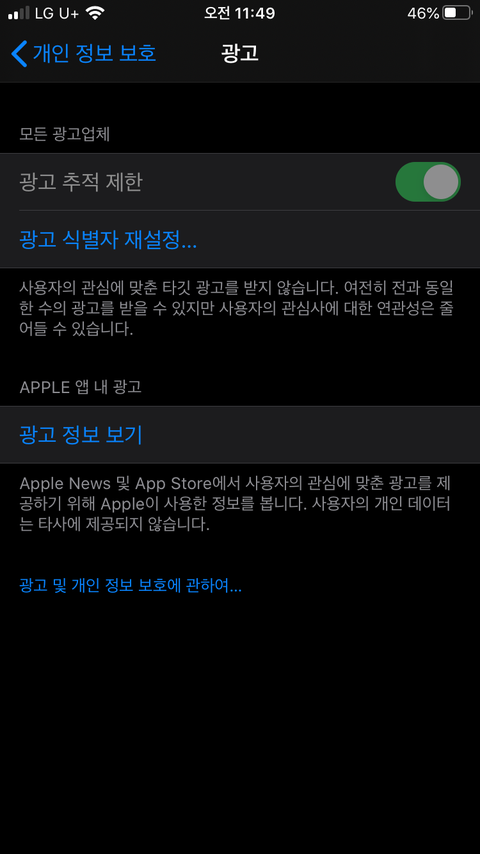 광고추적제한? 거기서 끄라는데 난 저거 눌러도 안돼ㅜㅜ엌해야대??