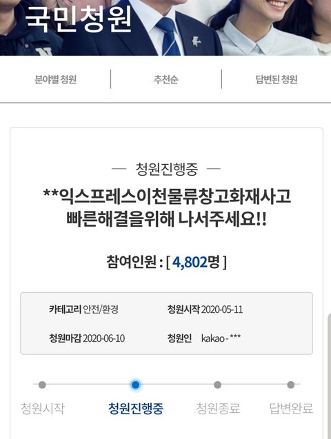 저는 2020년 4월 29일 이천에서있었던 물류창고 화재의 유가족입니다.