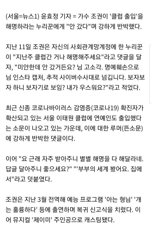 클럽 간 거 해명하라니까 조권 반응