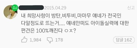 그리고 저 사람도 댓글 수정했을 가능성은 거의 없을 거라고 봐! 저 댓글 첫 대댓이 비투비 관련얘기고 저 댓글 있는 앨범이 방탄앨범이어서!!