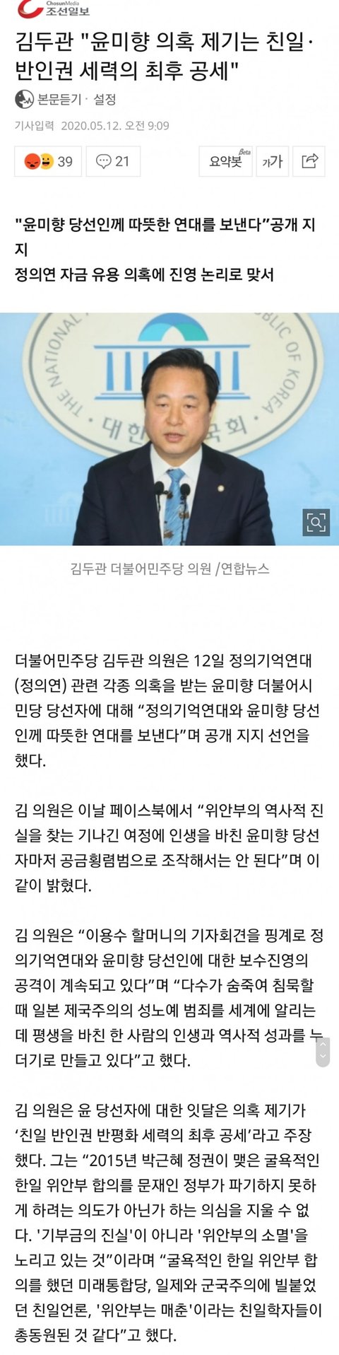 그에 대한 민주당 의원 발언.. 윤미향 의원도 조국 언급하는등 나 공격하면 보수언론 이라는 걸 모두 보여주시는중 ㅋㅋ 얘들아 위안부 피해보신 할머니들께 돌아갔어야하는 돈을 얘내가 먹은거라는 의혹이있는건대 상식적으로 말은 안된다.. 맥주집에서 3339만원 어캐했누 ㅋㅋ 여성인권 상장에 꼭필요한 피해자 보상관련이잖아.. 할머니들이 의혹 제기하니까 치매라는둥 기억이 잘 안나실거다 라고 일본에서 했던 말을 그대로 한다.. 자기들을 공격하는걸 보면서 친일 반정부세력 이러고 있는대 여기는 톡선에 그런거 가지도 않는구나 ㅋㅋ 관심이 이래없어?