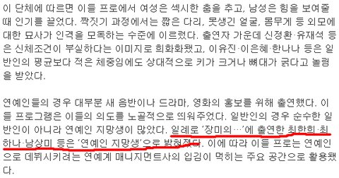 맨날 산장미팅에서 신발 안 신고 촬영하다보니 다른 키큰 여자 출연자들 옆에서