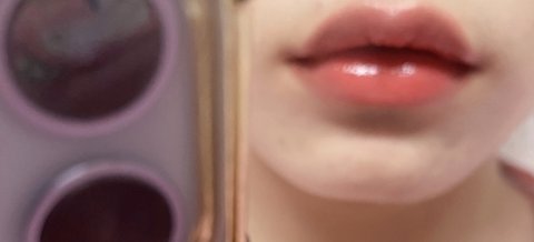입술 모양 칭찬해주는 맘 착한 댓쓰니들 있었는데 오버립해서 그렇지 원래 입은 완죤 옹졸해!! ㅠㅠ 탱글탱글해 보이는 것도 이 틴트 덕분이구! 증거 사진 남긴당 (표정짓고 있어서 더 작아보이는데 원래 입술은 살짝 더 커)