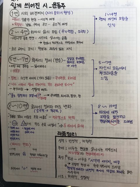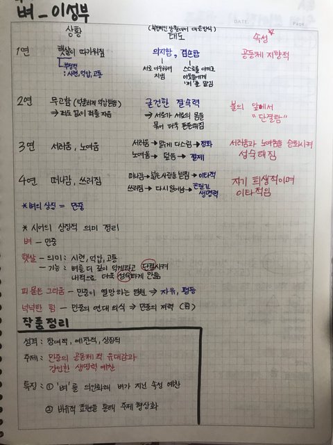 나같은 경우는 문학 분석 노트? 같은 걸 만들었는데 그냥 액기스만 뽑아 놓은거야! 서술형 대비하고, 내용 정리해보든 용도로! 사실 노트 필기하는거 별로 안좋아해서 그냥 액기스만 쏙쏙 뽑아 놓는 식으로 했어 근데 노트필기에 너무 많은 시간을 투자하지는 마