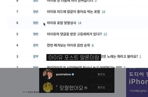 아이유 동생 : 포스트말론 미만잡ㅇㅇ