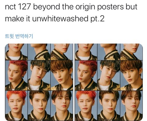 너네 이거 봤어? 외퀴들이 ^unwhitewashed^ 버전이라고 이ㅈㄹ 로 애들 사진 바꿔서 올려놓음 ㅋㅋ