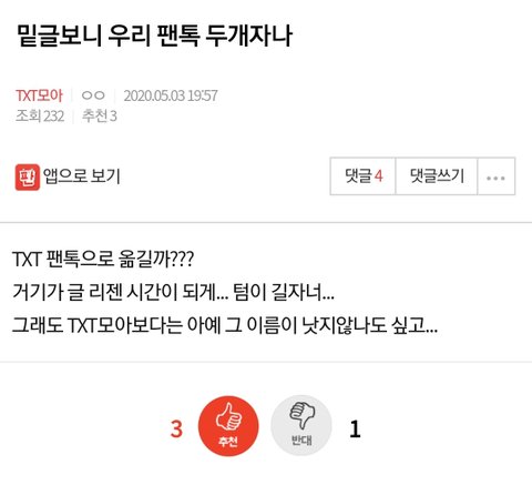 주기적으로 팬톡 이사가자는 얘기가 나왔어