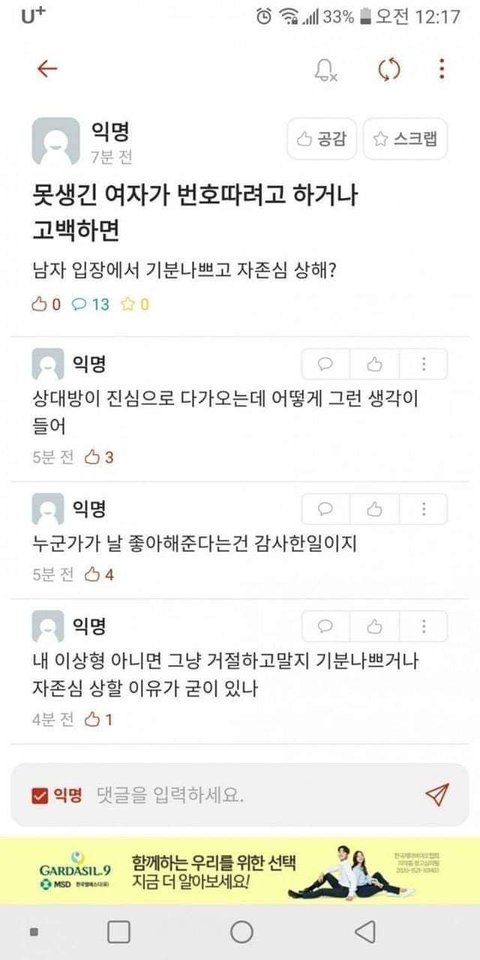 ㅋㅋㅋ근데 ㄹㅇ 못생긴 여자는 보통 걍 짜져있는데 못생긴 남자들은 주제파악을 못하고 넘 들이댐