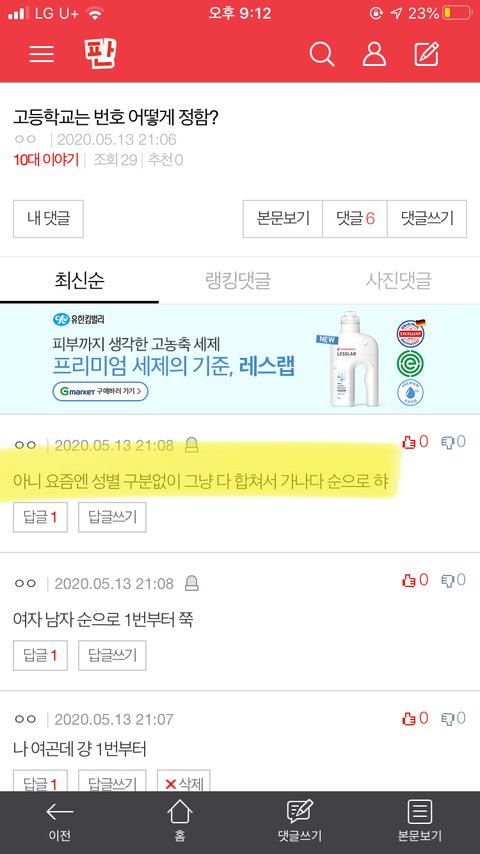 웅 우리학교도 성별로 안 나누고 ㄱㄴㄷ 순으로 하더라