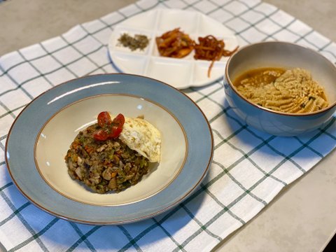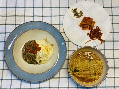 주말아침에 대충 만들어먹은 볶음밥과 라면입니다ㅋㅋㅋ 뭐든 볶거나 튀기면 참 맛있어져요