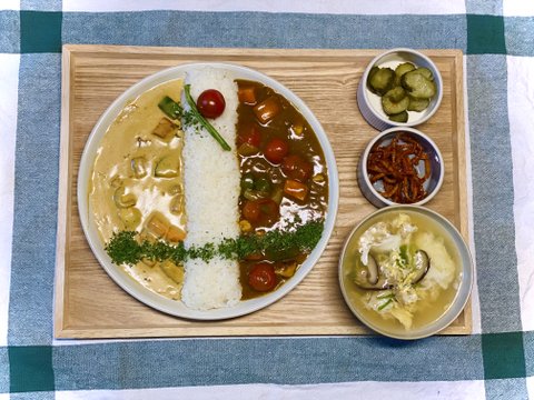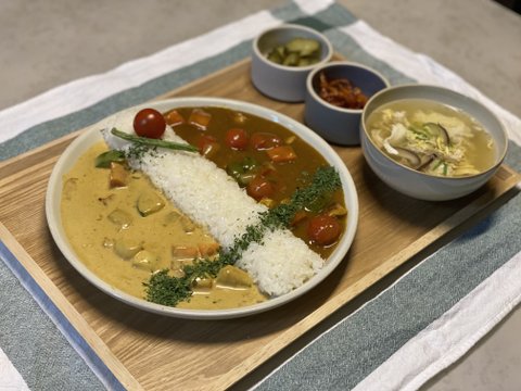 반은 토마토카레 반은 크림카레로 만들었는데요