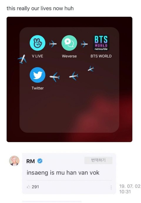 (설명: 저 4개 앱 모두 아미들이 주로 사용하는 앱!)