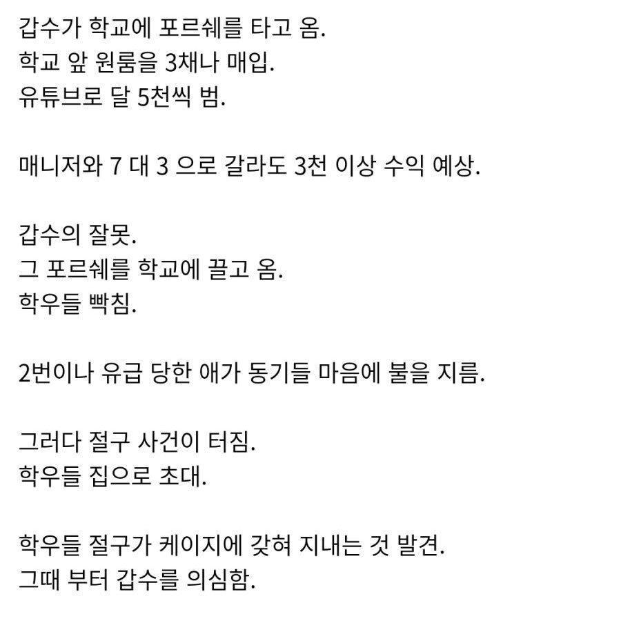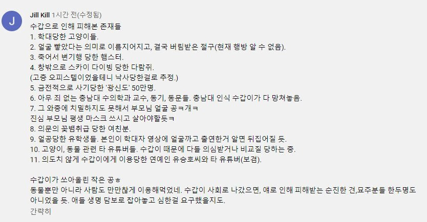이래서 유튜버들 후원해주기 전에 다시 생각해야 한다니까ㅋㅋ 저거 말고도 후원 구걸하며 영상 속에서만 쇼하다가 뒤에선 남이 좋은 일 하라고 준 돈으로 헛짓하고 이렇게 터진 사건들만 몇 개임? 내 댓글 보는 사람들 중에 유튜버 후원할 생각이 있는 인간은 정신차리고 진짜 상황이 안 좋은데 병원비도 없는 엄청 절박한 사람들 따로 알아보고 그런 사람 후원해라. 애초에 완성도 높은 영상을 찍어 올린다는건 비싼 카메라나 장비를 살 수 있을만큼 능력이 있다는 뜻이잖아ㅋ 덤으로 영상에 자막이나 음악도 깔렸으면 편집이 가능한 인력을 쓸 돈이나 노트북, 컴퓨터가 있다는 뜻이기도 하고. 정신차려라