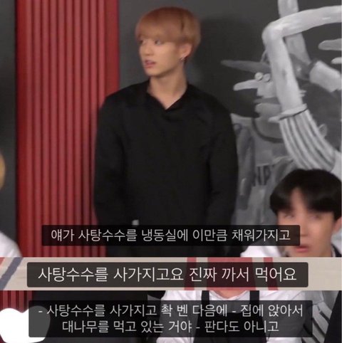 정국이 사탕수수 엄청 사서 냉동실에다 쟁여두고 씹어먹고 있는거 멤버들이 봤다고ㅋㅋㅋ
