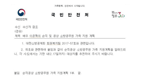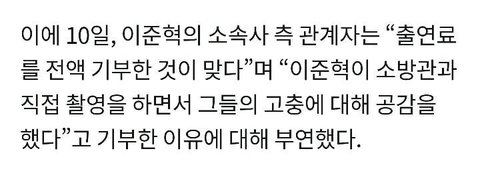 배우가 출연료를 전액 순직 소방공무원 가족들에게 기부함.