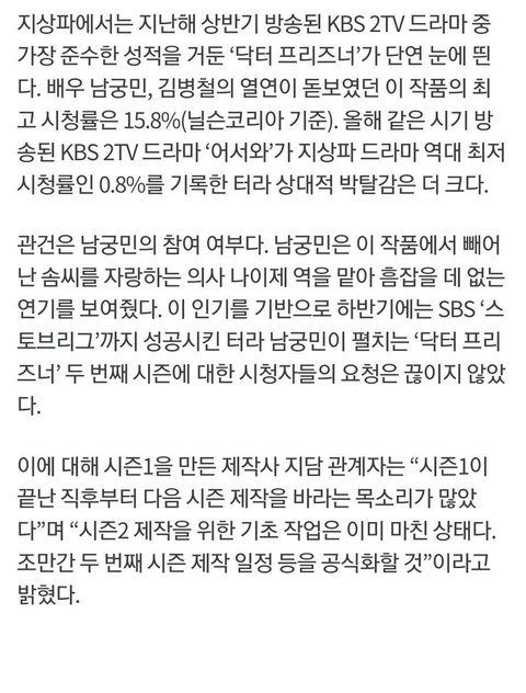 최근 <닥터 프리즈너> 시즌2 기초 작업에 들어갔다는 소식이 들림