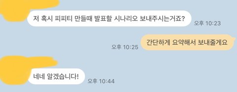 일단 여기서부터 띠용.... 대본을 만들어서 달라고 하길래 놀랐지만 그래도 발표하기 좋게 정리해주기로 함...