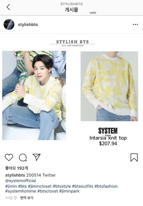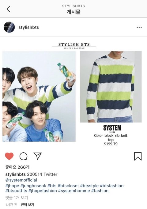 이 브랜드꺼 이번에 협업한다는 시스템이라는 브랜드 인데 벌써 입어서 홍보하려는듯 ㅋㅋㅋㅋㅋㅋ 근데 방탄이 입어도 옷이 글쎄다