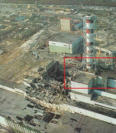 체르노빌 폭발 이후 지붕을 덮어버리기 전에