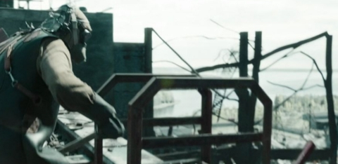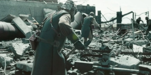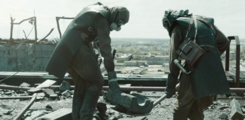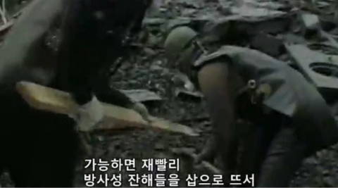 (손으로 만지면 방사선에 의해 큰 화상을 입음) 잔해를 정리함