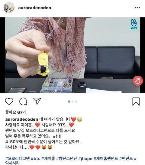 멤버 제이홉이 비즈로 팔찌 만드는 브이앱했는데