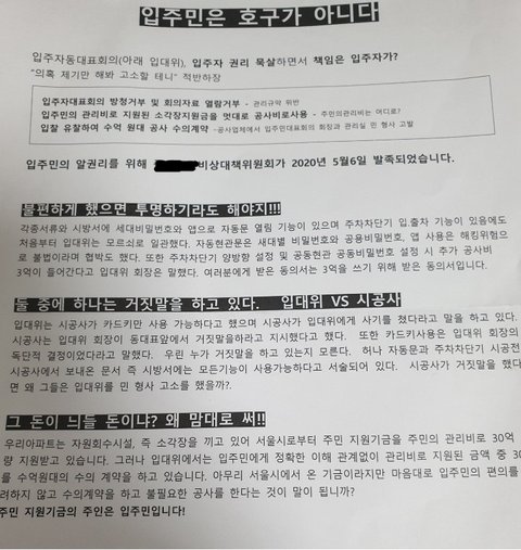 근데 그게 입주민들 동의없이 진행된 일이고 심지어 그걸로 인해서 득보기는 커녕 불편하기만 해짐