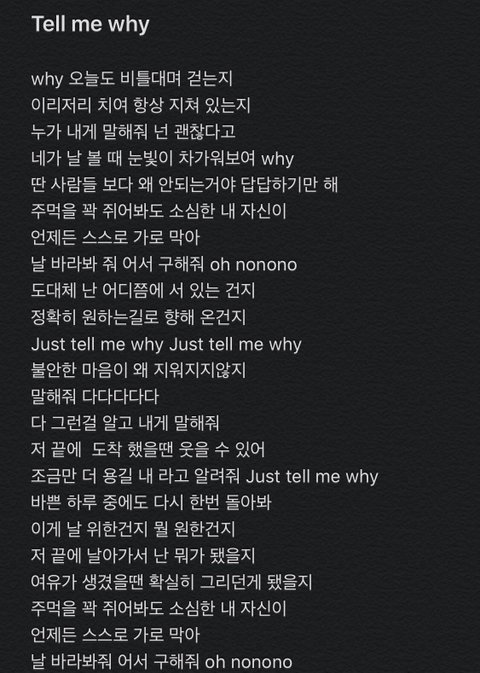 내일오늘 버젼은 위로가되고 tell me why 버젼은 위로를 해주고 싶다는 곡 ㄹㅇ 너무너무 맞는 말ㅠㅠㅠㅜ 틧터에서 이 글 봤는데 진심 공감 백배였음ㅠㅠㅠㅜ 내일오늘 아는사람 데모 버젼 다덜 한번씩 들어봐ㅠㅠㅠㅠ 이 버젼도 좋다ㅠㅠ