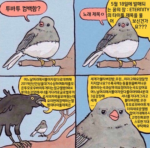 *투모로우바이투게더가 반년이라는 공백기를 뚫고 <5월 18일 월요일 6시> 3부작 중 마지막 꿈의 장:ETERNITY로 돌아옵니다!!