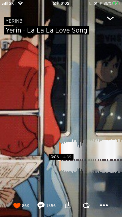 첫번째로는 YERINB, 백예린님이야!! 대표적으로는 “La La La Love Song”이랑 “가끔”이라는 곡이얍 둘 다 커버곡이구 밑에 사진이 라라라럽송이얍
