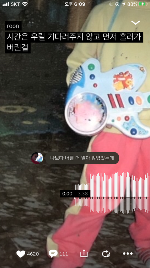 세번째로는 roon님! 어쩌다보니 여성 가수들만 소개하넹 암튼 노래 좋완 대표적인 곡으로는 “시간은 우리를 기다려주지 않고 먼저 흘러가버린걸”이랑 “추억 속 너에게”야... 반해버렷자너ㅠ 곡이 다 좋으니까 들어바