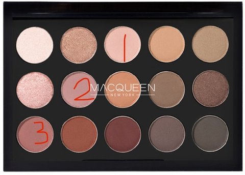 섀도우 - 맥퀸뉴욕 팔레트 1번으로 눈두덩이 2번으로 쌍커풀보다 조금 위까지 3번으로 쌍커풀 라인이랑 삼각존 채우고 애교살은 잇츠스킨 라이프 컬러 팔레트 02호 로라 중에서 위쪽 가운데 펄섀도우 발라! 애교살은 맥퀸뉴욕 페이크 업 3색 쉐딩 가운데 색상이야