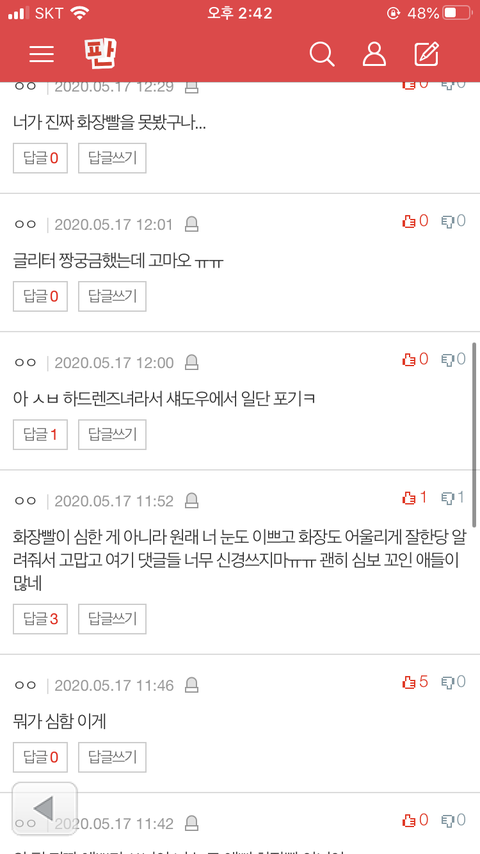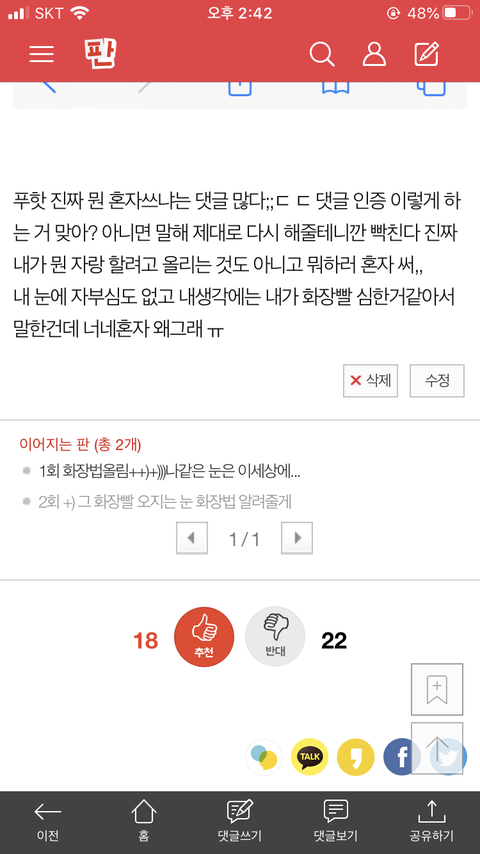 내 눈에 자부심도 없고 내생각에는 내가 화장빨 심한거같아서 말한건데 너네혼자 왜그래 ㅠ