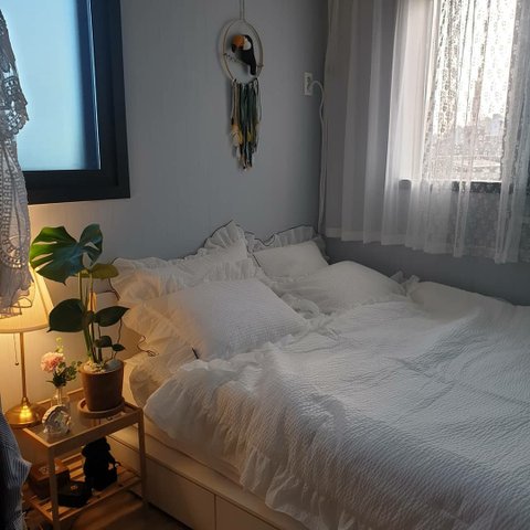 공주풍에 빠져서 흰색 시어서커 이불 셋트를 구매했는데, 이제 곧 여름 오다보니