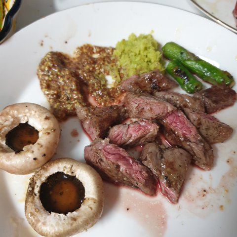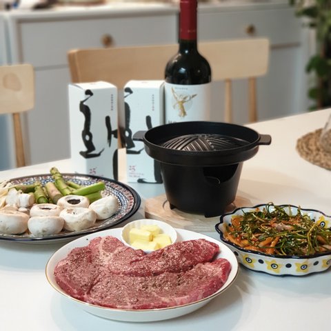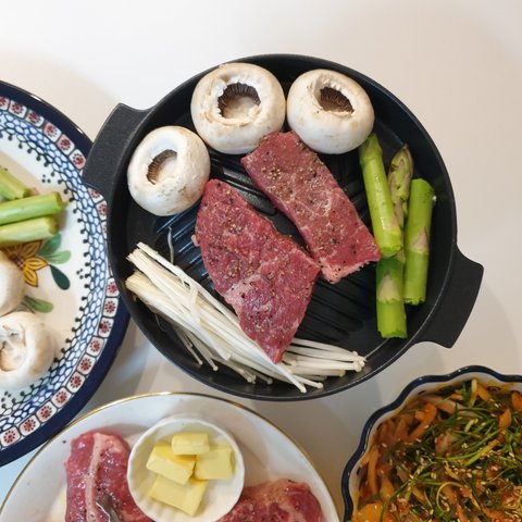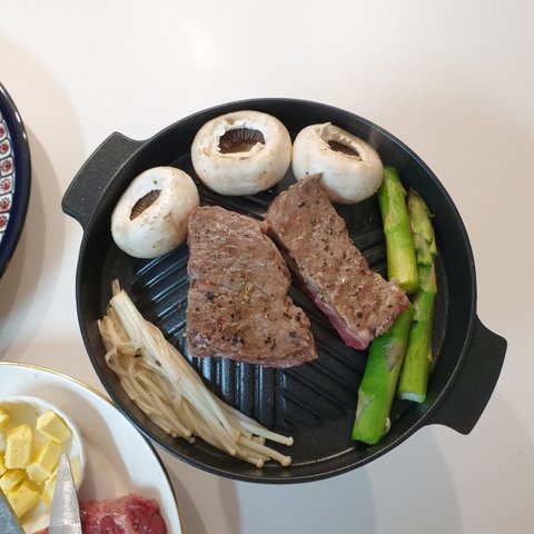 아무튼 고기를 사서 후추랑 올리브유로 마리네이트 하고 냉장고에 숙성시키고 구웠어요!