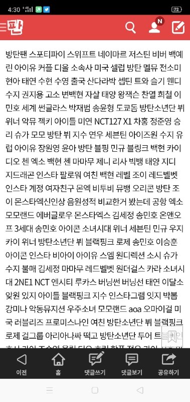 서치 ㅈㄴ 어렵잖아 ㅅㅂ 오만 아이돌 다 갖다넣어놨어 이런 게시물 다 합치면1000개는 가볍게 넘을거같은데 대체 왜 이러는거임
