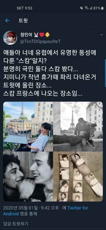 밑댓이 추가해달라고 했는데 아마 skam인가 그 영화가 동sung애 영환데 ㅈㅁ이 파리 갔을때 저 영화 찍은 장소 갔던거 같음