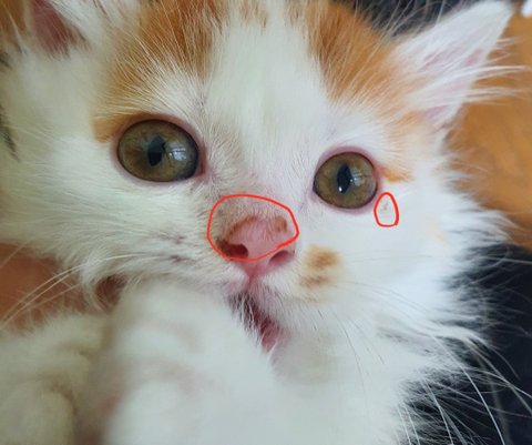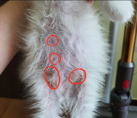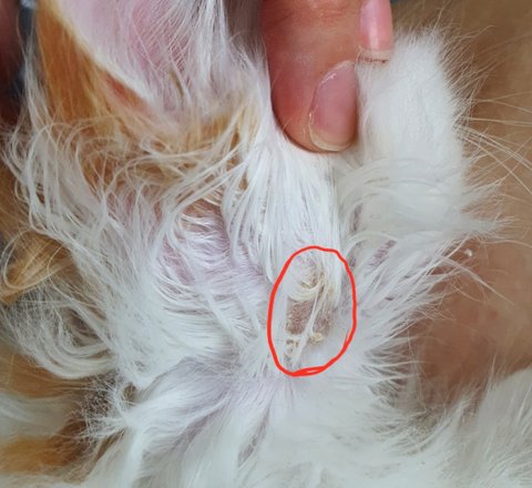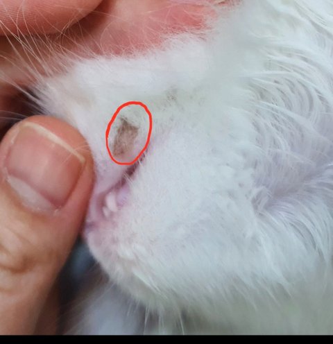 (귀뒷쪽은 장모종으로 털을 헤집어서 봐야 보이고, 입가도 안쪽이라 입술을 살짝 들거나 아래에서 봐야 보임)