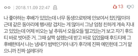 짝남이 아침 먹으려고 머리 까치집 돼서 급식실 가는데 나 마주치니까 아씨... 이러면서 얼굴 가리고 개빨리 뛰어간 거 ㅋㅋㅋㅋㅋ 귀엽지 않냐