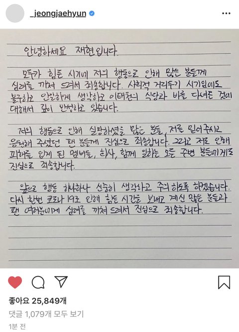 재현 사과문 제일 먼저 올림