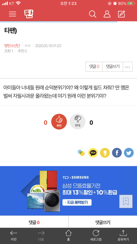 타팬)아미는 팬톡 별로안해??