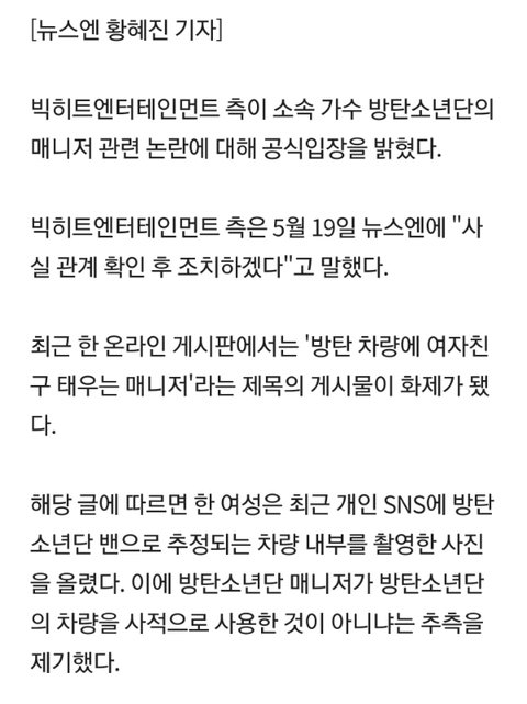 매니저일 공식 입장 떴다(ㅇㅈ 추가