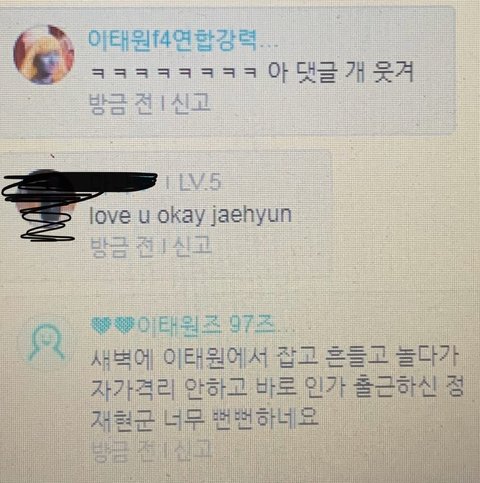 엔시티 127 컴백기념 라이브 켰는데 댓글창 상황.. 팬덤 네군데 모여서 지금 저러고 있는데 저중에 외국팬들은 i love u .. 이러고 있고 초등학생 팬들 재현오빠 잘못 없어요 괜찮아요 이러고 있고 빡친 팬들은 작작하라고 딴멤들 다 본다고 열불내고 있는데 계속 이태원 클라쓰 봤어요? 맛집 추천해주세요 ㅇ ㅈ ㄹ 중임 ㄹㅇ 개환멸날듯..ㅋㅋ