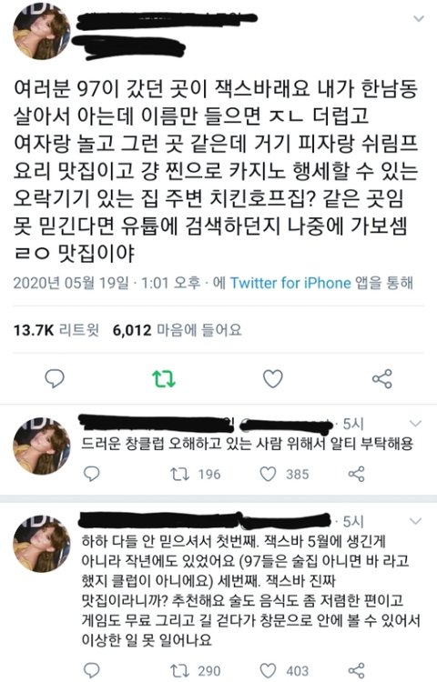 클럽은 절대 방문 안했다고 하고 위에 글 보면 위치상 잭스바 간거 맞는거같아 일단 확실한걸로만 까자 M클럽은 메이드 클럽이야 재현 정국 차은우 민규 이태원 97즈