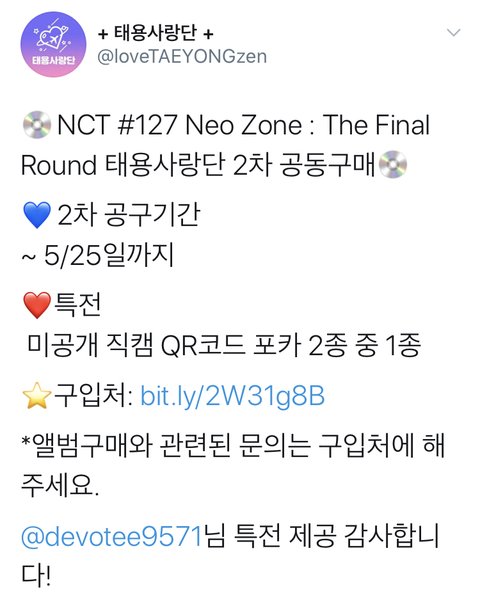 난 이미 태용 사랑단에서 샀지만 두장 더 산다^^