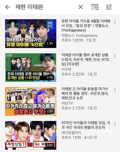 뉴스에 개인으로 얘기 나온 적도 없는 애가 저렇게 대문짝만하게 썸네일에 이태원, 자가격리 뜨니까 기분 진짜 쪽팔린다 윤오야 예전에는 유튜브에 재현 치면 재현 i like me better, 재현 직캠, 재현 복근 많이 나왔는데 이제는 이태원 아이돌로 박제 당했어 진짜 개쪽팔린다