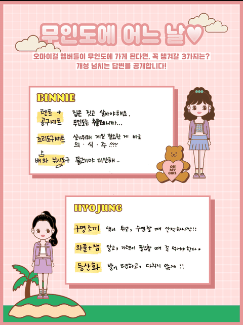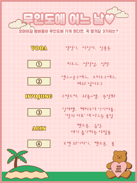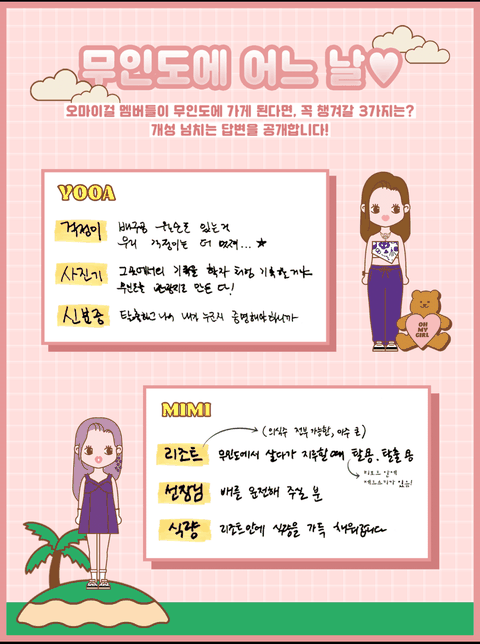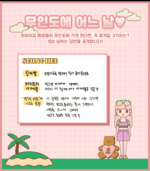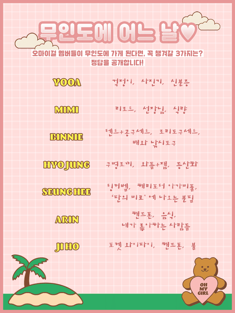 내가 좋아하는 사람들 : 가족들, 멤버들, 미라클 모두 다 같이 무인도에 갈 거에요!! "