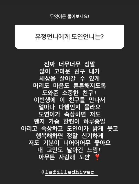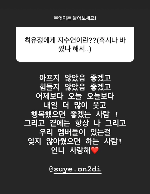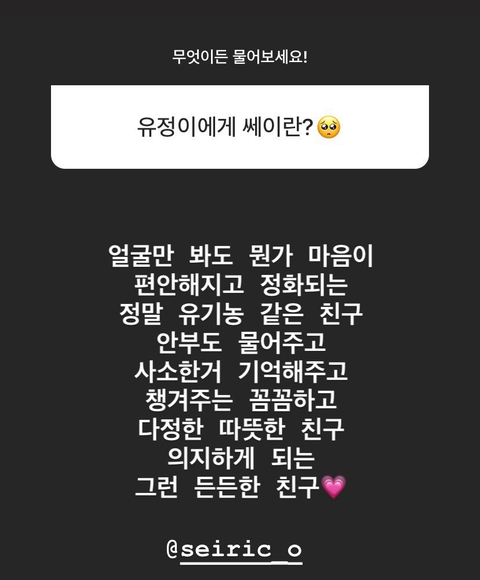 인스타 스토리로 팬들이 질문했는데